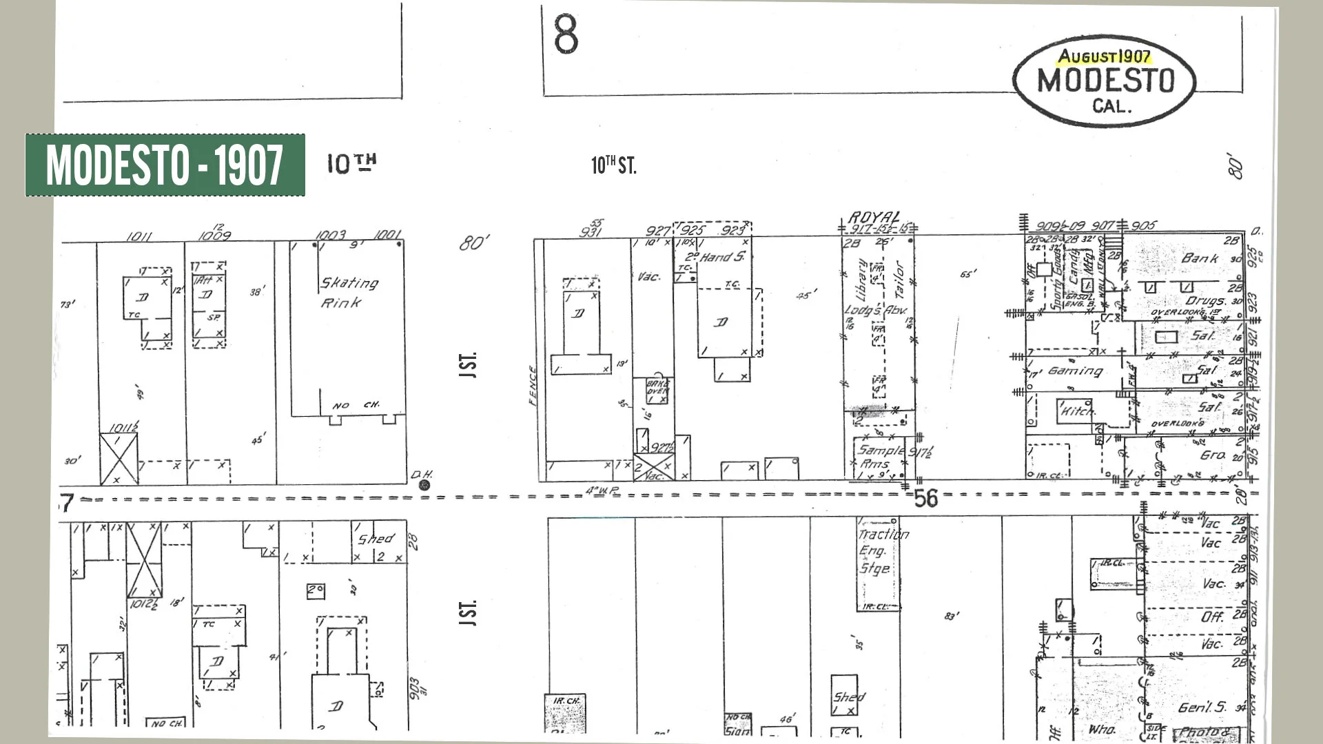 The intersection of 10th and J Streets in Modesto has an allure that few other intersections from 1st to 18th possess. In Modesto’s earliest years, two men, Charles Murray and W.A. Jones had a vision to turn the four corners of 10th and J Streets into what they called “The New Center”. Years later, in the 1950’s, it would be known as the hub of cruising made famous in George Lucas’ classic film, American Graffiti. In Modesto’s earliest days (1894-1919), the corners of 10th and J St. saw incredible transformation. From stables, residences, a bar and an ice skating rink to what you see today … original buildings from 1913 — the Murray and Jones Building, Est. 1913.